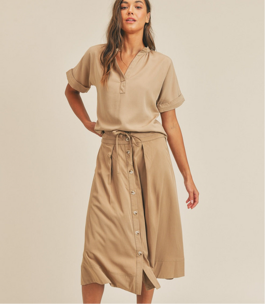 MABLE Short Sleeve Top and Button Down Midi Skirt Set