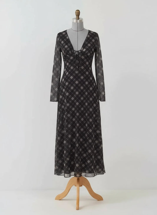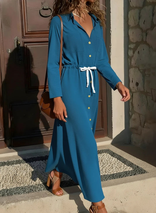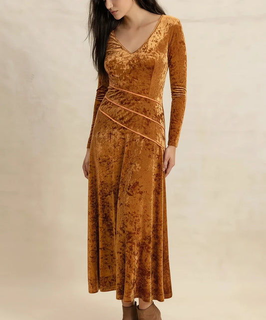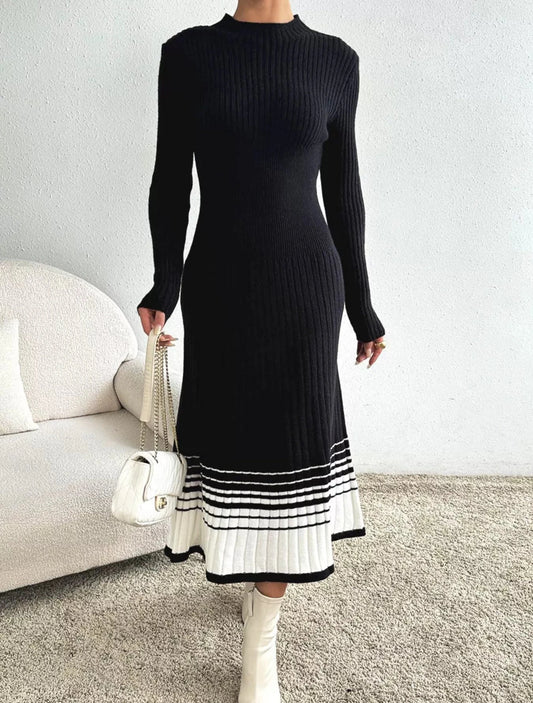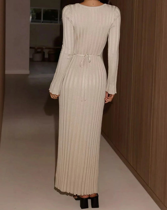Ribbed Knit V-Neck Long Sleeve Maxi Dress