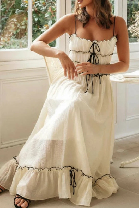 Eyelet Tie Neck Half Sleeve Midi Dress