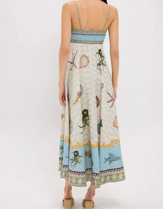 Ocean Print Spaghetti Strap Midi Dress