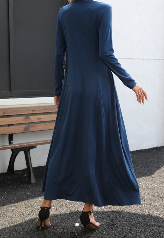 Round Neck Long Sleeve Maxi Dress with Pockets