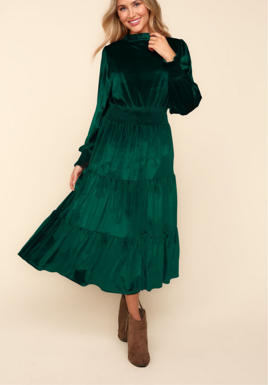 Haptics Mock Neck Smocked Waist Velvet Tiered Dress