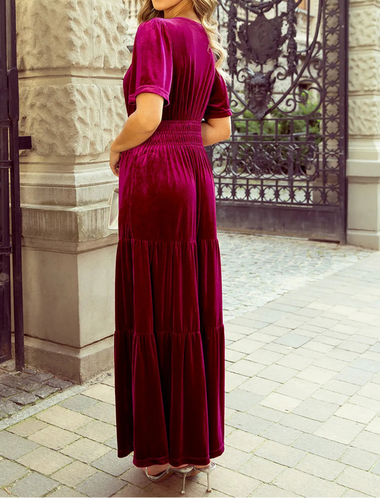 BOMBOM Short Sleeve Tiered Maxi Dress