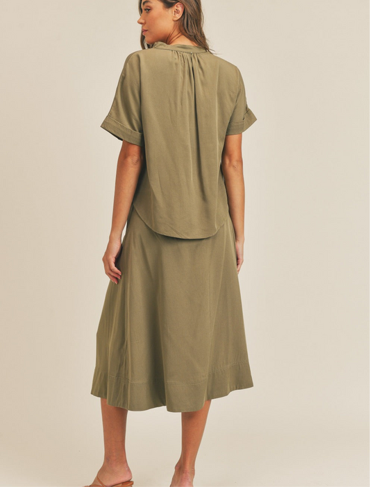 MABLE Short Sleeve Top and Button Down Midi Skirt Set