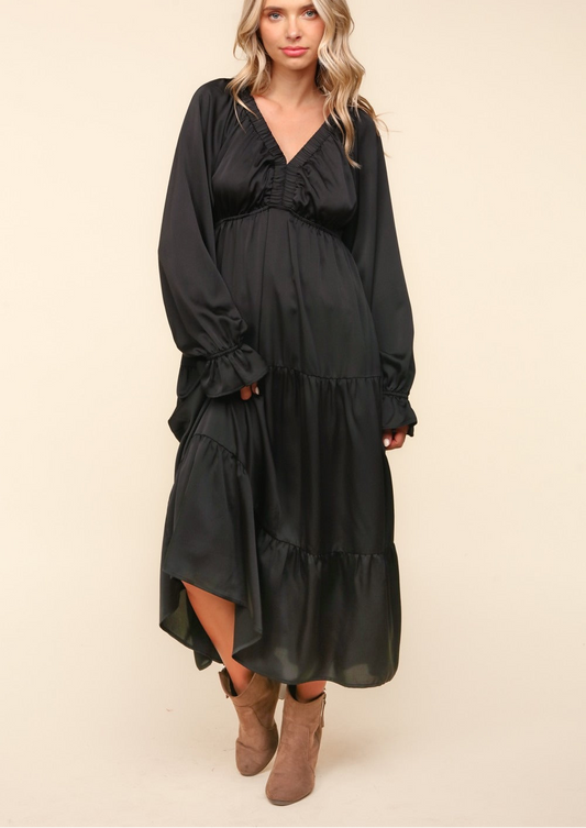 Haptics Flounce Sleeve Tiered Midi Dress with Pockets