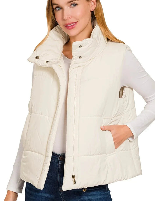 Love Tree Zip Up Turtleneck Cropped Vest Coat