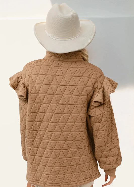 Double Take Ruffled Texture Half Zip Long Sleeve Sweatshirt