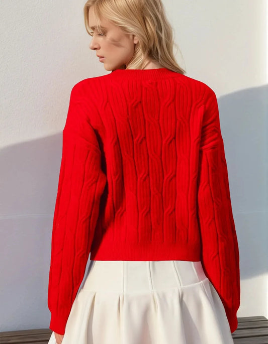 BiBi Cable Knit Sweater with Shoulder Braid Detail