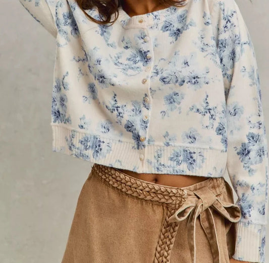 SO ME Vintage Floral Print Button Down Sweater Cardigan