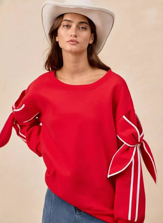 BiBi Bow Detail Sleeves Fleece Sweatshirt