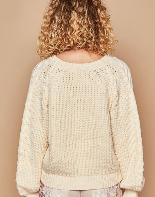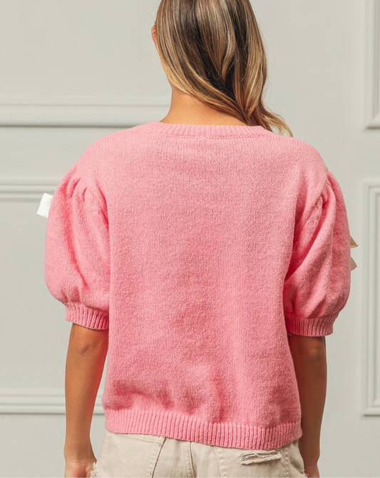 BiBi Ribbon Bow Detail Puff Sleeve Sweater