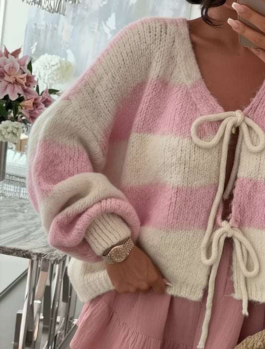 Lace Bow-Tie Front Long Sleeve Cardigan