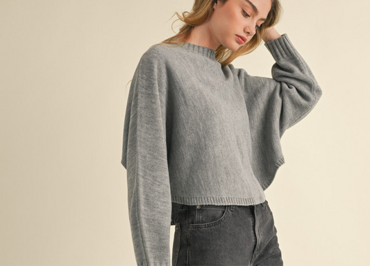 Mable Round Neck Dolman Sleeve Cropped Sweater