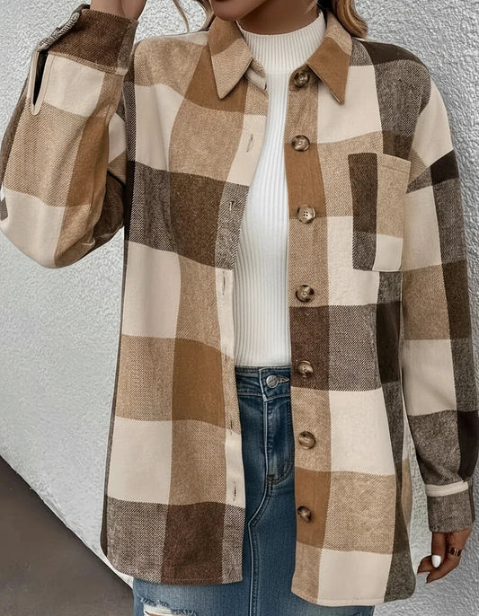 Plaid Button-Up Shacket with Chest Pockets