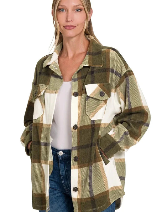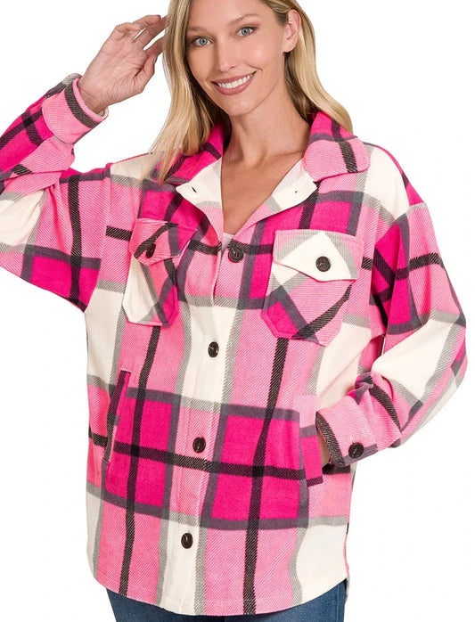 Zenana Oversized Plaid Fleece Shacket