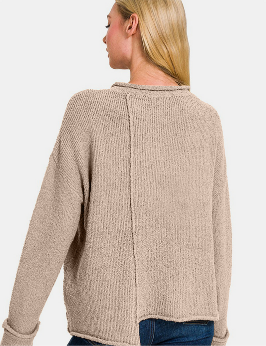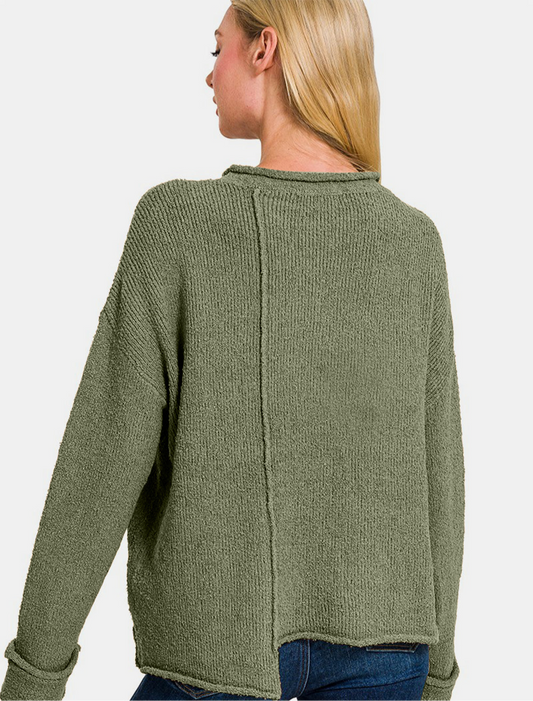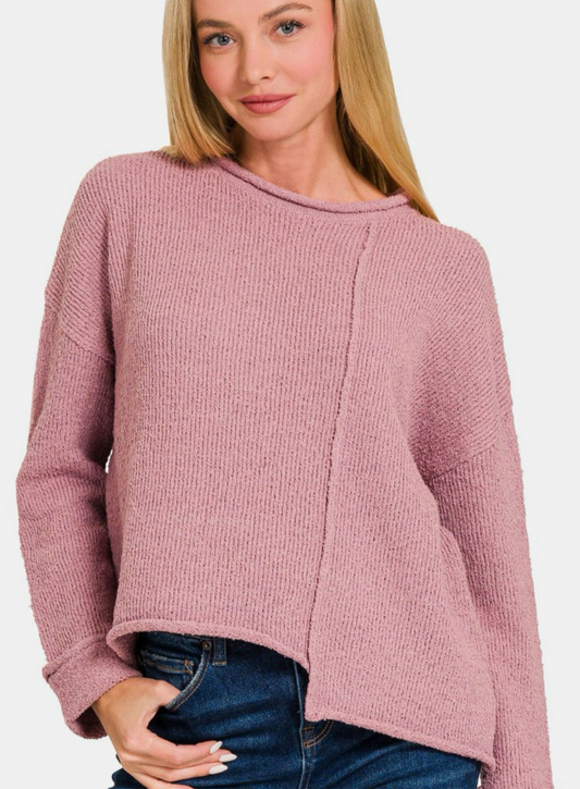Zenana Asymmetric Hem Drop Shoulder Sweater