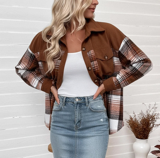 Plaid Button Up Cropped Jacket