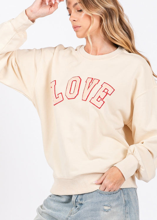 SAGE + FIG LOVE Path Applique Drop Shoulder Sweatshirt