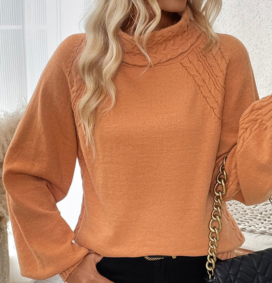 Cable-Knit Turtleneck Long Sleeve Sweater