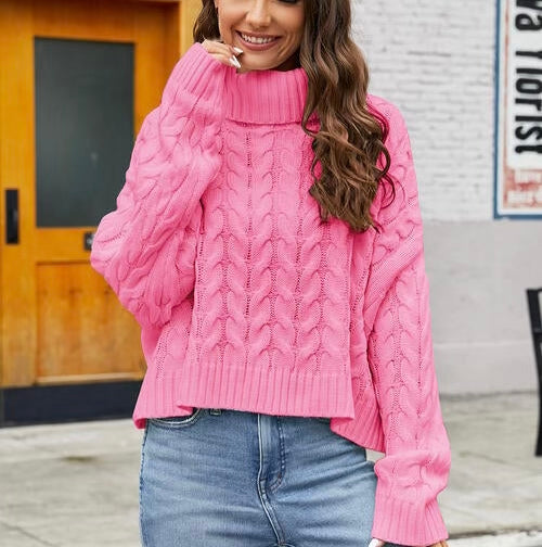 Turtleneck Cable-Knit Long Sleeve Sweater