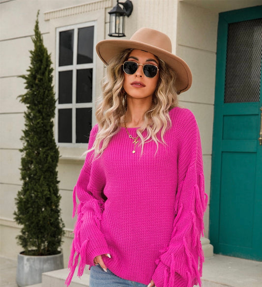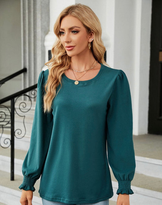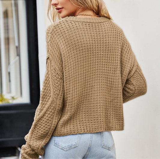 Waffle-Knit Round Neck Reglan Sleeve Sweater