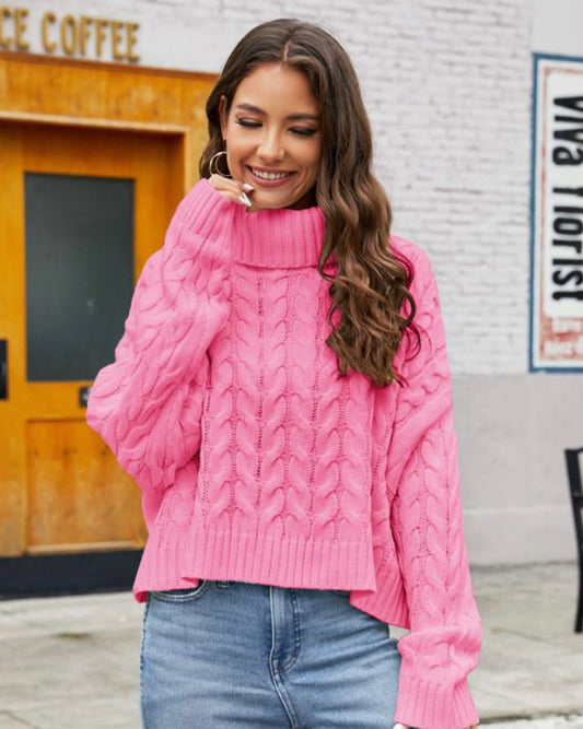 Cable-Knit Round Neck Dropped Shoulder Sweater