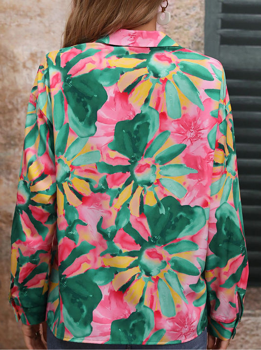 Floral Print Round Neck Dropped Shoulder Pullover Sweater