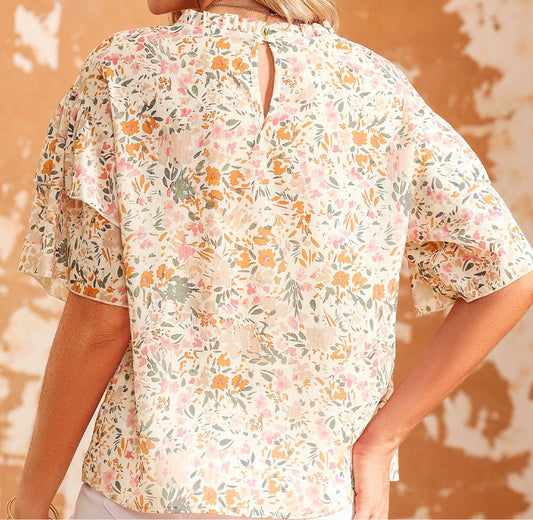 Floral Round Neck Short Sleeve Blouse