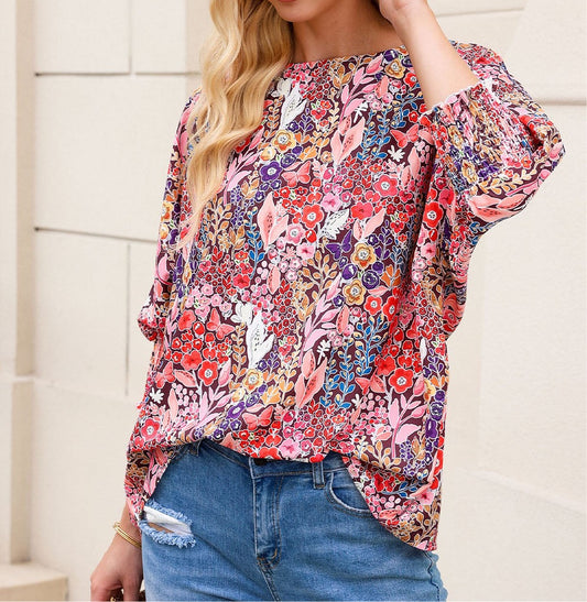 Floral Print Long Puff Sleeve Blouse