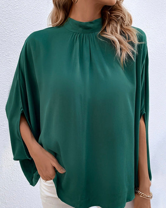 Tie Back Mock Neck Blouse